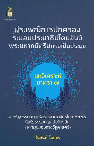 ประเพณีการปกครองระบอบประชาธิปไตยอันมีพระมหากษัตริย์ทรงเป็นประมุข : บทวิเคราะห์มาตรา 7 จากรัฐธรรมนูญแห่งราชอาณาจักรไทย 2540 ถึงรัฐธรรมนูญฉบับปัจจุบัน (จากมุมมองทางรัฐศาสตร์) / ไชยันต์ ไชยพร