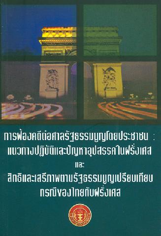 การฟ้องคดีต่อศาลรัฐธรรมนูญโดยประชาชน : แนวทางปฏิบัติและปัญหาอุปสรรคในฝรั่งเศส และสิทธิและเสรีภาพตามรัฐธรรมนูญเปรียบเทียบกรณีของไทยกับฝรั่งเศส / สำนักงานศาลรัฐธรรมนูญ ร่วมกับ สถานเอกอัครราชทูตสาธารณรัฐฝรั่งเศสประจำประเทศไทย