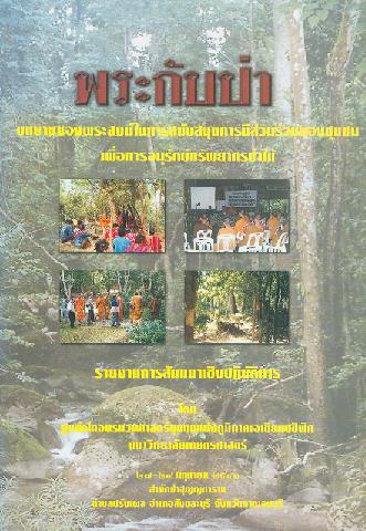พระกับป่า : บทบาทของพระสงฆ์ในการสนับสนุนการมีส่วนร่วมของชุมชนเพื่อการอนุรักษ์ทรัพยากรป่าไม้ / ศูนย์ฝึกอบรมวนศาสตร์ชุมชนแห่งภูมิภาคเอเชียแปซิฟิก มหาวิทยาลัยเกษตรศาสตร์ ; บรรณาธิการ ฝ่ายสงฆ์ พระมหาเจิม สุวโจ,พระโกศิล ปริปุณโณ ; ฝ่ายฆราวาส สุทธิชัย ภูลวรรณ, วรรณา นาวิกมูล และวรพงษ์ เวชมาลีนนท์