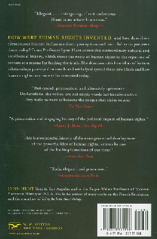 Summary: How were human rights invented, and how does their tumultuous history influence their perception and our ability to protect them today? From Professor Lynn Hunt comes this extraordinary cultural and intellectual history, which traces the roots of human rights to the rejection of torture as a means for finding the truth. She demonstrates how ideas of human relationships portrayed in novels and art helped spread these new ideals and how human rights continue to be contested today.