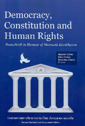 | 505 0 ^aCosmopolitan Lawyer, Diplomat, Humanist- Dr.Warawit Kanitasen and the CPG/^rHenning Glaser--^tการคัดเลือกและฝึกอบรมผู้ที่ได้รับการแต่งตั้งเป็นข้าราชการระดับสูงของฝรั่งเศส (Ecole Nationale d Administration หรือ ENA) [Selection and Training of Appointees for the Senior Civill Service in France (Ecole Nationale d'Administration or ENA)]/^rวิษณุ วรัญญู (Vishnu Varunyou)--^tชีวิตและงานของศาสตราจารย์ ดร.อุลริช ชอยเน่อร์ (Prof. Dr.Ulrich Scheuner, 1903-1981) (Life and Work of Prof. Dr.Ulrich Scheuner)/^rบุญศรี มีวงศ์อุโฆษ (ฺBoonsri Mewongukote)--^tเราเข้าใจตะวันตกแค่ไหน (How well do we Understand the West?)/^rส. ศิวรักษ์ (Sulak Sivaraksa)--^tปฏิวัติฝรั่งเศส 1789:จาการกำเนิดขึ้นของสภาแห่งชาติจนถึงการจัดทำคำประกาศสิทธิมนุษยชนและพลเมือง (The French Revolution: From the Establishment of the Nationnal Convention to the Making of the Declaration of the Rights of Man and Citizen)/^rปิยบุตร แสงกนกกุล--^tสังคมที่เป็นประชาธิปไตย: คุณค่า ความหวัง (Democratic Society: Values and Hope)/^rวรรณภา ติระสังขะ (Vannapar Tirasangka)--^tข้อพิจารณาโดยสังเขปเกี่ยวกับการเกิดขึ้นของรัฐธรรมนูญ และรัฐธรรมนูญในบริบทของการเปลี่ยนแปลงการปกครอง 24 มิถุนายน 2475 (Brief Remarks on the Constitution Making and the Constitution in the Context of the 1932 Revolution)/^rวรเจตน์ ภาคีรัตน์ (Worachet Pakeerut)--^tการจัดทำรัฐธรรมนูญในศตวรรษที่ 21: ความชอบธรรมเชิงกระบวนการกับสิทธิมนการมีส่วนร่วมของประชาชน (Constitution Making in the 21st Century: Procedural Legitimacy and the People's Right to Particpate)/^rปูนเทพ ศิรินุพงศ์ (Poonthep Sirinupong)--^tมอง "เค้าโครงการเศรษฐกิจ" และ "จากครรภ์มารดาสู่เชิงตะกอน" ในปัจจุบัน (Loking the "The Economic Plan": "From Womb to Tomb" in Contemporary Times)/^rอิสริยา นิติทัณฑ์ประภาศ บุญญะศิริ (Issariya Nitithanprapas Bunyasiri)--^t"สันติประชาธรรม" อุดมการณ์ของอาจารย์ป๋วย (The "Santi Pracha Dhamma" Ideology of Prof. Puey)/^rกษิดิศ อนันทนาธร (Kasidit Ananthanathon)--^tผู้หญิง ความยุติธรรม และความทรงจำบาดแผล (Women, Justice and the Memory of Wounds)/^rอังคณา นีละไพจิตร (Angkhana Neelapaijit)--^tเราจะต่อต้านเผด็จการอย่างไร (ภาคต่อ) [How do we Withstand a Dictatorship? (Prequel)]/^rเอกชัย ิไชยนุวัติ--^tพระเจ้าช้างเผือก THE KING OF THE WHITE ELEPHANT: อมตศิลป์สันติภาพ (THE KING OF THE WHITE ELEPHANT: On the Eternal Art of Peace)/^rสินธ์ุสวัสดิ์ ยอดบางเตย (Sinsawat Yodbangtoei)--^tสันติภาพแห่งเสรีไทย สู่สันติภาพในสังคมไทย (From the Peace of Free Thai Movement to Peace in Thai Society)/^rฐาปนันท์ นิพิฏฐกุล (Thapanan Nipithakul)--^tNon-Violence and Multilateral Diplomacy/^rIoan Voicu--^tAsia and the Right to Democratic Governance/^rNiels Petersen--^tDemocracy and Majority Rule/^rIngwer Ebsen--^tThe State and Religious Communities - Their Relationship and Its Development in Germany/^rDirk Ehlers--^tOn the Constitutionality of Political Parties in Germany: The Federal Constitutional Court's Innovative NPD Decision/^rLasse Schuldt--^t'People's Sector Politics' (Kanmueang Phak Prachachon) in Thailand: Problems of Democracy in Ousting Prime Minister Thaksin Shinawatra/^rMichael H. Nelson--^tResistance to Military Rule in Thailand: Legal Mobilization as Brokerage Mechanism Between Rural Villagers and Urban Middle-Classes in Resisting Military Rule in Thailand/^rEugenie Merieau--^tWatchmen With and Without Arms? Some Remarks on Selected Oversight Bodies Under the 2017 Constitution/^rHenning Glaser--^tTowards an Intellectual Agenda Against Dictatorship/^rTyrell Haberkorn--^tStaat und Nation in Liang Qichaos "Erneuerung des Volkes" (State and Nation in Liang Qichao's "Renovation of the People")/^rDuc Quang Ly--^tPerspektiven der Demokratie in Mali (Prospects of Democracy in Mali)/^rSalifou Traore--^tList of Contributors