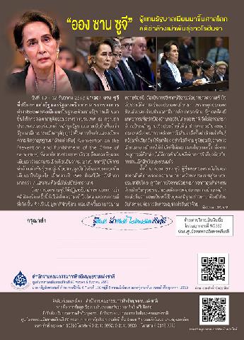 -- ออง ซานซูจี ผู้แทนรัฐบาลเมียนมาขึ้นศาลโลกคดีฆ่าล้างเผ่าพันธุ์ชาวโรฮีนจา.