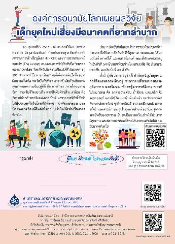 -- องค์การอนามัยโลกเผยผลวิจัย เด็กยุคใหม่เสี่ยงมีอนาคตที่ยากลำบาก.
