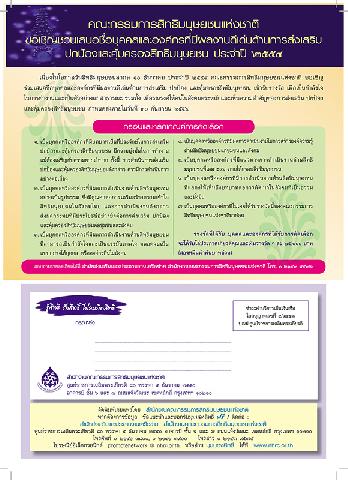 -- คณะกรรมการสิทธิมนุษยชนแห่งชาติ ขอเชิญเสนอชื่อบุคคลและองค์กรที่มีผลงานดีเด่นด้านการส่งเสริมปกป้องและคุ้มครองสิทธิมนุษยชน ประจำปี 2554.
