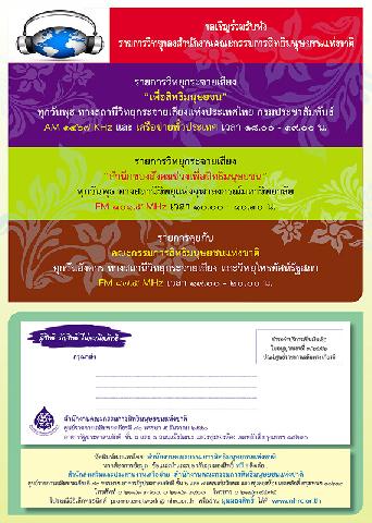 -- ขอเชิญร่วมรับฟังรายการวิทยุของสำนักงานคณะกรรมการสิทธิมนุษยชนแห่งชาติ.