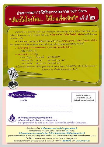 -- ประกาศผลการตัดสินการประกวด Talk Show "เดี่ยวไมโครโฟน... ให้โดนเรื่องสิทธิ" ครั้งที่ 2.