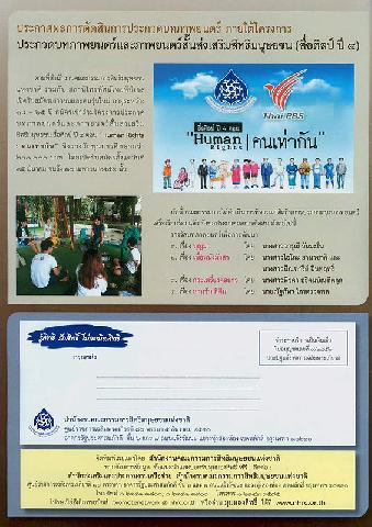 -- ประกาศผลการตัดสินการประกวดบทภาพยนตร์ ภายใต้โครงการประกวดบทภาพยนตร์และภาพยนตร์สั้นส่งเสริมสิทธิมนุษยชน (สื่อศิลป์ ปี 4).
