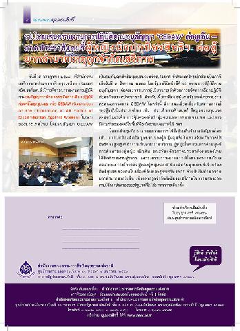 -- รบ. ไทยเสนอรายงานปฏิบัติตามอนุสัญญา "CEDAW" ต่อยูเอ็น - ภาคประชาสังคมชี้ผู้หญิงนักปกป้องสิทธิฯ ต่อสู้ยากลำบากเหตุถูกจำกัดเสรีภาพ.