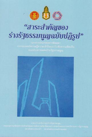 สาระสำคัญของร่างรัฐธรรมนูญฉบับปฏิรูป : เอกสารประกอบการสัมมนาการเผยแพร่ความรู้ความเข้าใจและรับฟังความคิดเห็นของประชาชนต่อร่างรัฐธรรมนูญ / ถวิลวดี บุรีกุล ...[และคนอื่น ๆ]