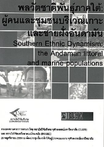 พลวัตชาติพันธุ์ภาคใต้ : ผู้คนและชุมชนบริเวณเกาะและชายฝั่งอันดามัน :รวมบทความจากการเสวนา 28 พฤศจิกายน 2551 ณ ห้องประชุมชั้น 4 ตึกวิศิษฐ์ประจวบเหมาะ จุฬาลงกรณ์มหาวิทยาลัย / โดย สถาบันวิจัยสังคม จุฬาลงกรณ์มหาวิทยาลัยและสถาบันวิจัยเอเชียอาคเนย์ร่วมสมัย (IRASEC)