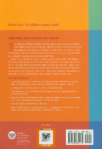 Summary: The Publication Manual of the American Psychological Association, Seventh Edition is the official source for APA Style. With millions of copies sold worldwide in multiple languages, it is the style manual of choice for writers, researchers, editors, students, and educators in the social and behavioral sciences, natural sciences, nursing, communications, education, business, engineering, and other fields. Known for its authoritative, easy-to-use reference and citation system, the Publication Manual also offers guidance on choosing the headings, tables, figures, language, and tone that will result in powerful, concise, and elegant scholarly communication. It guides users through the scholarly writing process-from the ethics of authorship to reporting research through publication. The seventh edition is an indispensable resource for studentsand professionals to achieve excellence in writing and make an impact with their work. The seventh edition has been thoroughly revised and updated to reflect best practices in scholarly writing and publishing. All formats are in full color, with a new tabbed spiral version Improved ease of navigation, with many additional numbered sections to help users quickly locate answers to their questions Resources for students on writing and formatting annotated bibliographies, response papers, and other paper types as well as guidelines on citing course materials Dedicated chapter for new users of APA Style covering paper elements and format, including sample papers for both professional authors and student writers New chapter on journal article reporting standards that includes updates to reporting standards for quantitative research and the first-ever qualitative and mixed methods reporting standards in APA Style New chapter on bias-free language guidelines for writing about people with respect and inclusivity in areas including age, disability, gender, participation in research, race and ethnicity, sexual orientation, socioeconomic status, and intersectionality More than 100 new reference examples covering periodicals, books, audiovisual media, social media, webpages and websites, and legal resources More than 40 new sample tables and figures Expanded guidance on ethical writing and publishing practices, including how to ensure the appropriate level of citation, avoid plagiarism and self-plagiarism, and navigate the publication process Guidelines that support accessibility for all users, including simplified reference, in-text citation, and heading formats as well as additional font options. | | หัวเรื่อง |