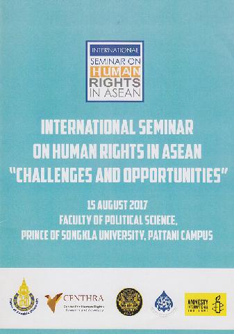 International seminar on human rights in ASEAN : Challenges and opportunities: 15 August 2017, Faculity of Political Science, Prince of Songkla University, Pattani Campus Human Rights in ASEAN