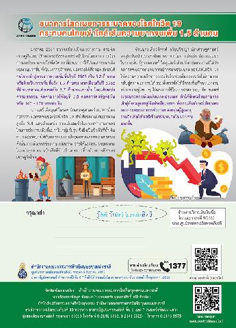 -- ธนาคารโลกเผยการระบาดของโรคโควิด 19 กระทบคนไทยเข้าใกล้เส้นความยากจนเพิ่ม 1.5 ล้านคน.