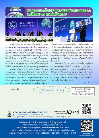 -- ประชาคมโลกตั้งเป้าลดการปล่อยก๊าซเรือนกระจกลงร้อยละ 45 ภายในปี 2030.