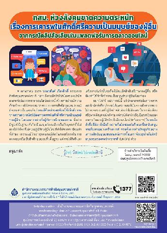 -- กสม. ห่วงสังคมขาดความตระหนัก เรื่องการเคารพในศักดิ์ศรีความเป็นมนุษย์ของผู้อื่นจากกรณีคลิปล้อเลียนในแพลตฟอร์มการตลาดออนไลน์.