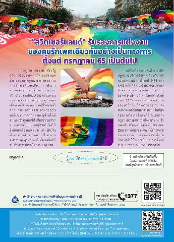 -- ^"สวิตเซอร์แลนด์^" รับรองการแต่งงานของคนรักเพศเดียวกันอย่างเป็นทางการ ตั้งแต่ กรกฎาคม 65 เป็นต้นไป.
