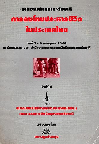 รายงานสัมมนาระดับชาติการลงโทษประหารชีวิตในประเทศไทย : วันที่ 3-4 กรกฎาคม 2549 ณ ห้องประชุม 501 สำนักงานคณะกรรมการสิทธิมนุษยชนแห่งชาติ คณะกรรมการสิทธิมนุษยชนแห่งชาติ ; สมาคมสิทธิเสรีภาพของประชาชน