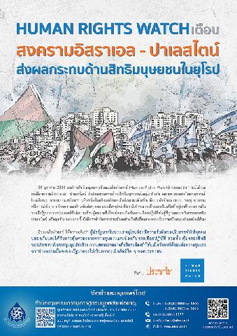 -- Human Rights Watch เตือนสงครามอิสราเอล-ปาเลสไตน์ ส่งผลกระทบด้านสิทธิมนุษยชนในยุโรป.