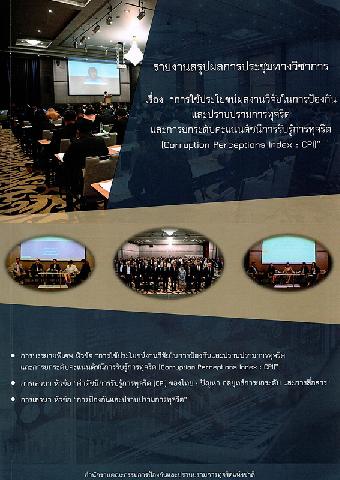 รายงานสรุปผลการประชุมทางวิชาการ เรื่อง "การใช้ประโยชน์ผลงานวิจัยในการป้องกันและปราบปรามการทุจริตและการยกระดับคะแนนดัชนีการรับรู้การทุจริต (Corruption Perceptions Index : CPI)" สำนักงานคณะกรรมการป้องกันและปราบปรามการทุจริตแห่งชาติ