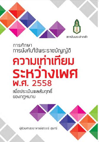การศึกษาการบังคับใช้พระราชบัญญัติความเท่าเทียมระหว่างเพศ พ.ศ. 2558 เพื่อประเมินผลสัมฤทธิ์ของกฎหมาย สาวตรี สุขศรี