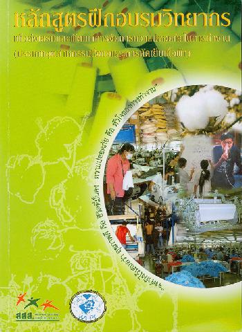 หลักสูตรการฝึกอบรมวิทยากร : เพื่อส่งเสริมและพัฒนาการจัดการความปลอดภัยในการทำงาน (ประเภทอุตสาหกรรมสิ่งทอและการตัดเย็บเสื้อผ้า สภาเครือข่ายกลุ่มผู้ป่วยจากการทำงานและสิ่งแวดล้อมแห่งประเทศไทย ; สมบุญ สีคำดอกแค, บรรณาธิการ