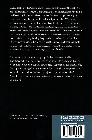 Mental health, legal capacity, and human rights edited by Michael Ashley Stein, Harvard Law School, Massachusetts; Faraaz Mahomed, Wits University; Vikram Patel, Harvard Medical School; Charlene Sunkel, Global Mental Health Peer Network