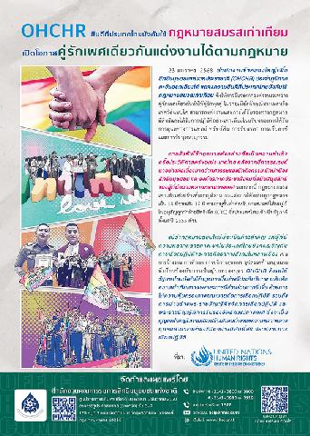 -- OHCHR ยินดีที่ประเทศไทยบังคับใช้ กฎหมายสมรสเท่าเทียม เปิดโอกาสคู่รักเพศเดียวกันแต่งงานได้ตามกฎหมาย.
