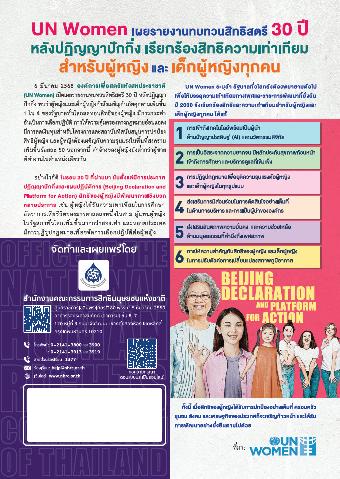 -- UN Women เผยรายงานทบทวนสิทธิสตรี 30 ปี หลังปฏิญญาปักกิ่ง เรียกร้องสิทธิความเท่าเทียมสำหรับ ผู้หญิงและเด็กผู้หญิงทุกคน.