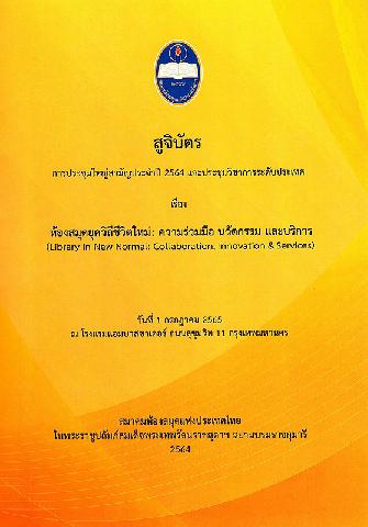 กรุงเทพฯ : สมาคมห้องสมุดแห่งประเทศไทยในพระราชูปถัมภ์สมเด็จพระเทพรัตนราชสุดาฯ สยามบรมราชกุมารี, 2565.