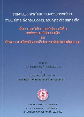 รายงานผลการดำเนินงานของประเทศไทยตามพิธีสารเลือกรับของอนุสัญญาว่าด้วยสิทธิเด็ก เรื่อง การค้าเด็ก การค้าประเวณีเด็ก และสื่อลามกที่เกี่ยวกับเด็ก และ เรื่องความเกี่ยวพันของเด็กในความขัดแย้งกันด้วยอาวุธ คณะอนุกรรมการ เรื่อง "สิทธิเด็ก" คณะกรรมการส่งเสริมการพัฒนาเด็กและเยาวชนแห่งชาติ ; เสนอต่อ คณะกรรมการสิทธิเด็กแห่งสหประชาชาติ
