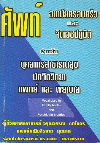 ศัพท์ : อนามัยครอบครัวและจิตเวชปฏิบัติ / บรรณาธิการ, วรุณวรรณ ผาโคตร, สิรนาถ นุชนาถ และ ธาดา วิมลวัตรเวที