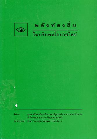 พลังท้องถิ่นในบริบทในนโยบายใหม่ / ศูนย์การศึกษาพัฒนาสังคม คณะรัฐศาสตร์ จุฬาลงกรณ์มหาวิทยาลัย สำนักงานคณะกรรมการวัฒนธรรมแห่งชาติ