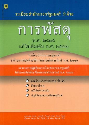 ระเบียบสำนักนายกรัฐมนตรีว่าด้วยการพัสดุ พ.ศ. 2535 แก้ไขเพิ่มเติม พ.ศ. 2552 รวบรวมโดย ธีระพล อรุณะกสิกร ... .[และคนอื่นๆ]