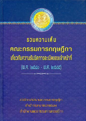 รวมความเห็นคณะกรรมการกฤษฎีกาเกี่ยวกับความรับผิดทางละเมิดของเจ้าหน้าที่ [พ.ศ. 2540 - พ.ศ. 2545] คณะผู้จัดทำ นิพนธ์ ฮะกีมี...[และคนอื่นๆ]