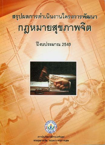 สรุปผลการดำเนินงานโครงการพัฒนากฎหมายสุขภาพจิต ปีงบประมาณ 2549 สถาบันกัลยาณ์ราชนครินทร์ กรมสุขภาพจิต