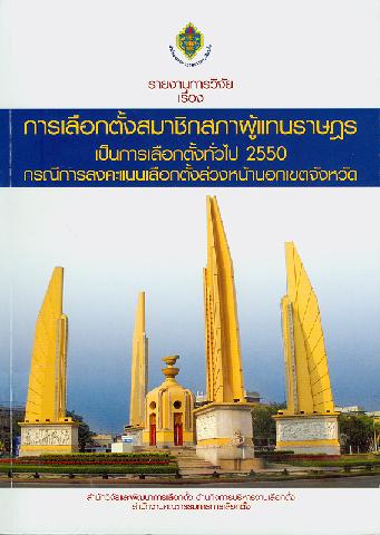 รายงานการวิจัยเรื่อง การเลือกตั้งสมาชิกสภาผู้แทนราษฎรเป็นการเลือกตั้งทั่วไป 2550 : กรณีการลงคะแนนเลือกตั้งล่วงหน้านอกเขตจังหวัด สำนักวิจัยและพัฒนาการเลือกตั้ง ด้านกิจการบริหารงานเลือกตั้ง สำนักงานคณะกรรมการการเลือกตั้ง