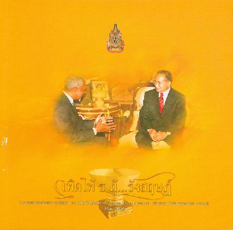 หนังสือที่ระลึกพิธีทูลเกล้าฯ ถวายรางวัลเกียรติยศ "รางวัลความสำเร็จสูงสุดด้านการพัฒนามนุษย์ ของโครงการพัฒนาแห่งสหประชาชาติ" แด่พระบาทสมเด็จพระเจ้าอยู่หัว พฤษภาคม พ.ศ. 2549