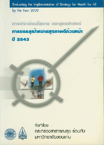 การประเมินนโยบายและยุทธศาสตร์การบรรลุเป้าหมายสุขภาพดีถ้วนหน้าปี 2543 / สำนักนโยบายและแผนสาธารณสุข กระทรวงสาธารสุข ร่วมกับคณะมนุษยศาสตร์และสังคมศาสตร์ คณะพยาบาลศาสตร์ และคณะสาธารณสุขศาสตร์ มหาวิทยาลัยขอนแก่น