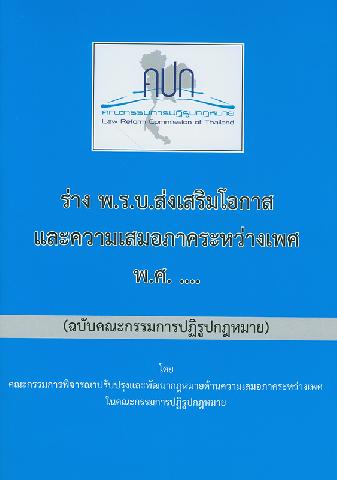 ร่าง พ.ร.บ.ส่งเสริมโอกาสและความเสมอภาคระหว่างเพศ พ.ศ. ... : (ฉบับคณะกรรมการปฏิรูปกฎหมาย)/ คณะกรรมการพิจารณาปรับปรุงและพัฒนากฎหมายด้านความเสมอภาคระหว่างเพศ ในคณะกรรมการปฏิรูปกฎหมาย