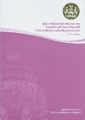 คู่มือการมีส่วนร่วมสำหรับประชาชนตามระเบียบสำนักนายกรัฐมนตรีว่าด้วยการรับฟังความคิดเห็นของประชาชน พ.ศ. 2548 ศูนย์บริการประชาชน สำนักงานปลัดสำนักนายกรัฐมนตรี