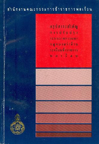 สรุปสาระสำคัญการปรับปรุงระบบราชการและกฎหมายว่าด้วยระเบียบข้าราชการพลเรือน / สำนักงาน ก.พ.