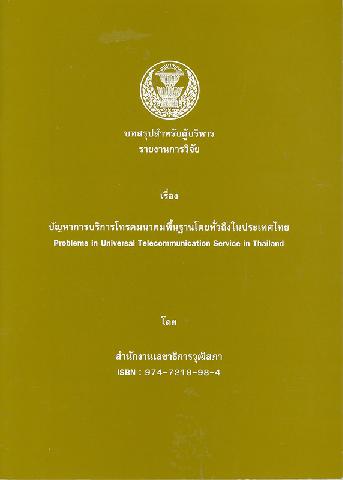บทสรุปสำหรับผู้บริหาร รายงานการวิจัยเรื่อง ปัญหาการบริการโทรคมนาคมพื้นฐานโดยทั่วถึงในประเทศไทย / โดย สำนักงานเลขาธิการวุฒิสภา
