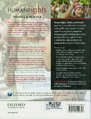 Contents: Introduction : human rights in politics and practice/ Michael Goodhart -- Part I. Human rights and politics -- Normative and theoretical foundations of human rights / Anthony Langlois -- Human rights in international law / Rhona K. M. Smith -- Measuring human rights/ Todd Landman -- Human rights in international relations/ Tim Dunne and Marianne Hanson -- Human rights in comparative politics/ Sonia Cardenas -- Sociological and anthropological approaches/ Damien Short -- Ideological (mis) use of human rights/ David Chandler