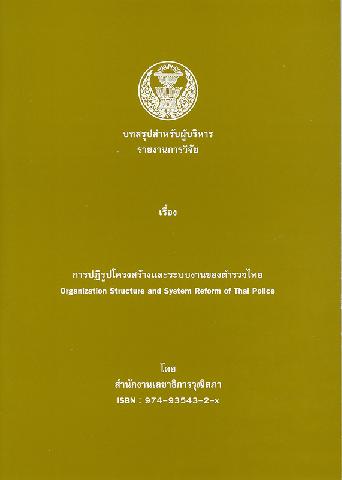 บทสรุปสำหรับผู้บริหาร รายงานการวิจัยเรื่อง การปฏิรูปโครงสร้างและระบบงานของตำรวจไทย / โดย สำนักงานเลขาธิการวุฒิสภา