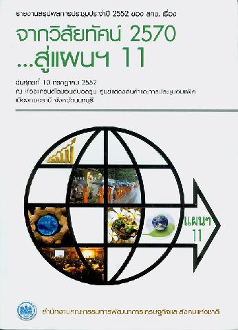 รายงานสรุปผลการประชุมประจำปี 2552 ของ สศช. เรื่อง จากวิสัยทัศน์ 2570...สู่แผนฯ 11 วันศุกร์ที่ 10 กรกฎาคม 2552 ณ ห้องแกรนด์ไดมอนด์บอลรูม ศูนย์แสดงสินค้าและการประชุม อิมแพ็ค เมืองทองธานี จังหวัดนนทบุรี / สำนักงานคณะกรรมการพัฒนาการเศรษฐกิจและสังคมแห่งชาติ