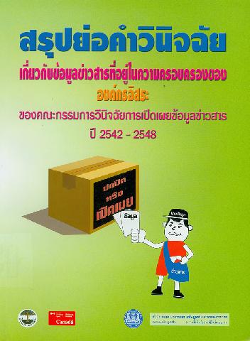 สรุปย่อคำวินิจฉัยเกี่ยวกับข้อมูลข่าวสารที่อยู่ในความครอบครองขององค์กรอิสระ ของคณะกรรมการวินิจฉัยการเปิดเผยข้อมูลข่าวสาร ปี 2542 - 2548 สำนักงานคณะกรรมการข้อมูลข่าวสารของราชการ