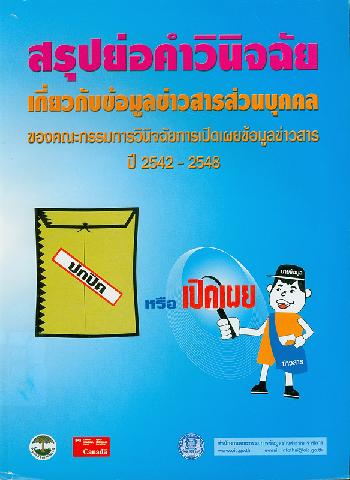 สรุปย่อคำวินิจฉัยเกี่ยวกับข้อมูลข่าวสารส่วนบุคคลของคณะกรรมการวินิจฉัยการเปิดเผยข้อมูลข่าวสาร ปี 2542 - 2548 สำนักงานคณะกรรมการข้อมูลข่าวสารของราชการ