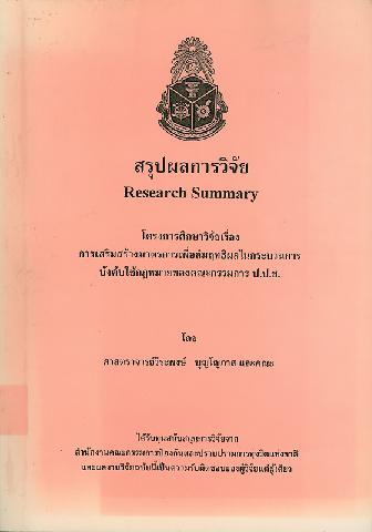 สรุปผลการวิจัย โครงการศึกษาวิจัยเรื่องการเสริมสร้างมาตรการเพื่อสัมฤทธิผลในกระบวนการบังคับใช้กฎหมายของคณะกรรมการ ป.ป.ช. / โดย วีระพงษ์ บุญโญภาส ... [และคนอื่น ๆ]