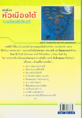 505 0 ^aเส้นทางวัฒนธรรมทะเลใต้ --^tเมืองท่าโบราณที่ปักษ์ใต้ --^tอิสลามกับหัวเมืองใต้ --^tหัวเมืองใต้จากจดหมายเหตุจีน --^tดินแดนมะละกาของชาวมลายู --^tตำนานเมืองปัตตานี --^tเชื้อสายพระยาแขกเจ็ดเมือง --^tเล่าเรื่องเมืองปัตตานี --^tประวัติการเมืองปัตตานี --^tนางพระยาเมืองปัตตานี --^tเรื่องปืนใหญ่เมืองปัตตานี --^tผลจากสนธิสัญญาบาวริ่ง --^tอิทธิพลอังกฤษทางหัวเมืองใต้ --^tมิติวัฒนธรรมปัตตานี.