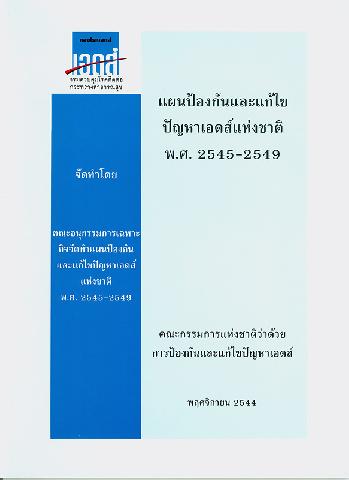 แผนป้องกันและแก้ไขปัญหาเอดส์แห่งชาติ พ.ศ. 2545-2549 คณะอนุกรรมการเฉพาะกิจจัดทำแผนป้องกันและแก้ไขปัญหาเอดส์แห่งชาติ ; บรรณาธิการ, อนุพงศ์ ชิตวรากร